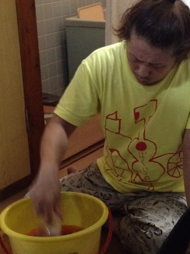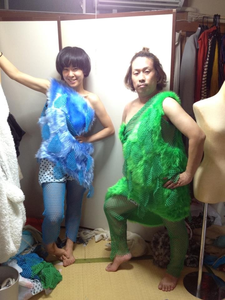 大変勉強になりました。 ゲシュタル島の皆様、おつかれさまでした。ありがとうございます。 ダンスだと、デザイン決まったら引きこもって作るのですが、 今回、演劇だと色んな事が日々変わってゆき、稽古場じゃないと出来ない作業もあったりして、2日おきには顔出してました。 衣裳替えや複数の役をこなす為に、衣裳数が多くて全部を把握仕切るのも大変でした。 衣裳を着ての稽古をほとんどしなかった為に、本番明けてから修正かけるとこもありました。 汗かいたら洗えばいいからもっと着てほしかったです。 本濃さんのダンボール衣裳はすごいですよね。天晴れ! 出来上がったトビオを試着してくれたのはうれしかったです。 陽くん、至らない私の完全バックアップありがとうございます。 ★ドリトルのコーディネート、サイズ直し、マシュー、ごきねず、ゴロンコの染色、トビオパンツ、アマカワ の仕上げ、モリトイズミの修正、仕上げ、ギデスベスト、キャプテンマダムコートとハワイアンキルト、ネコベスト、トサカくんの羽根、など。 スイートベイビーこと岩ちゃん、ミシン作業速いし、性格だからいつも安心して任せられる~。ありがとう! ★アマカワズボン、ギデス怪人パンツ、ネコ頭、尻尾、マダムエプロンのポケット付け、オタクハチマキなど。 ストロベリーベイビーちゃんこと、すがわら、塗りにしても手縫いにしてもセンスがいい!ありがとう! ★トビオシャツのボーダー、マシュー海賊Tシャツのボーダー、ゴキねずの水玉、ギデスのボーダー(お蔵入り)、など。 ベイビーキャンディーちゃんこと、とっくん、ホントに疲れてる時に助けてくれていつも感謝しております。 ★極楽鳥の羽根付けと、モーニングコール。あごと引き笑。金髪とめがね。 それから、 リアルマッスル泉くん、役者さんにこんなこと頼んでいいのかなと思ったんだけど、リアルくんじゃなきゃ頼めなかったです。ありがとうございます。 ★マシューの海賊Tシャツの右袖の猫の海賊マーク、アイドルオタクのTシャツの「マリコ♡LOVE」の文字。ゴキねずの尻尾つけも。 こんだけやって私は何をやっていたんだーって感じです。指示を出したり、デザインとパターン、裁断、リメイク、修正などが主な仕事でございます。 スイート♡ストロベリー☆キャンディーちゃん達、見せてあげられなくてごめんね。 12月にゲシュタル島ライブがあるので、その時は観られるよ!! いつもありがとう★心から感謝いたします!