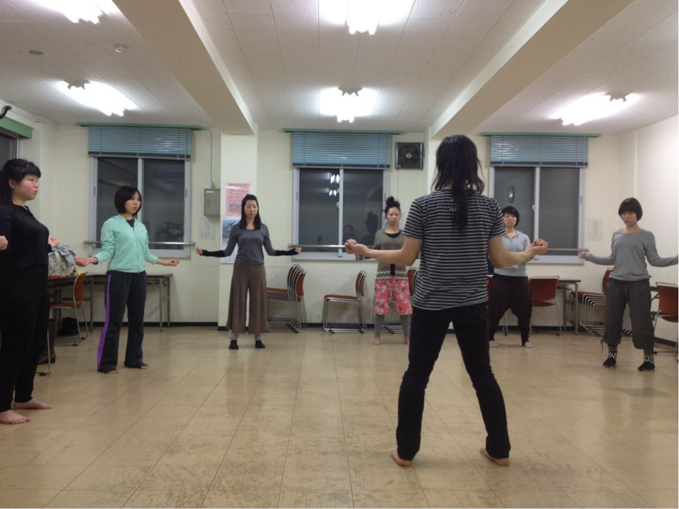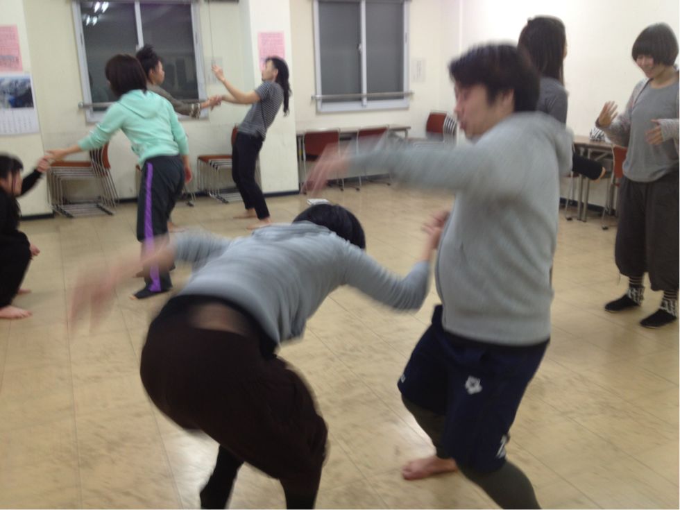 誰もが持つ身体構造と重さへ焦点を当て、それらを効果的に利用する方法を紹介。 甩手(すわいしゅ)、丹田(たんでん)、六方(ろっぽう)など、太極拳やヨガ、歌舞伎、舞踏でも用いられる運動力学の観点からダンステクニックを学ぶ。 重心、体重のかかり方、センターラインを意識しながら体を動かしてみる。 人の重心を遠ざけるゲーム そして応用。どんどんダンスに近づく体。 自分の体と向き合い、運動とは何かを再確認出来たのではないでしょうか。 あとは、日々の努力と探究心ですね。 長い一日でしたが、参加者の皆さんは筋肉痛になってないかな? 次回は春頃にワークショップを開催できたらなぁと考えております。 今回、参加した方も、参加出来なかった方も、また、興味を持たれた方も、みなさんのお越しをねねむ一同お待ちしております。 一緒に踊ってみよう! ねねむワークショップを開催します!! ねねむ主宰の陽茂弥による「踊ってみたい、踊りの作品を作ってみたい。でも・・・」というダンス未経験~初級者向けのワークショップと、ねねむメインダンサーで現在はドイツ在住の霜村佳広による「中心と脱力を知る」ダンス初級~中級者向けワークショップの2部構成。 もちろんどちらかだけの参加も、両方参加もOK。 『ねねむワ-クショップ Vol.1』 日時:2013年1月26日(土) 陽クラス 12:30~16:30 / 霜村クラス 17:30~21:30 会場:荻窪会議室(洋室)<詳細> 料金:1クラス 1,500円/2クラス通し 2,500円 参加のご希望はメール(nenemu.michikusa@gmail.com)にてお願いします。 その際はメールタイトルを「ねねむワークショップ申し込み」とし、 ①参加を希望するクラス、②お名前、③年齢、④連絡先(電話番号) を記入しお送り下さい。 ※ どちらのクラスも大いに身体を動かしますので、運動の出来る着替えやタオル、飲み物などをお持ち下さい。 みなさまのご参加を心よりお待ちしています!! 12:30~16:30 「ダンスはじめの一歩か二歩か三歩くらい」 講師: 陽 茂弥 対象:ダンス未経験~初級者 内容: ダンスや舞踏の経験はあるけど、自分の作品を作ったことがない。 踊りたいけど、どうしたらいいのかわからない。 踊りの作品を作っているが、思うように作れない。 そんな人向けのワークショップ。 発想や構想をいかに踊りにしていくか。 構成や見せ方のテクニックも紹介しつつ、みんなで身体を動かしながら、実際にダンス作品を作ってみます。 17:30~21:30 「centering & neutralize workshop for dancers」 講師: 霜村 佳広 対象:ダンス経験者(初級~中級者) 内容: 「立つ」ためのcentering 「動く」ためのneutralize誰もが持つ身体構造と重さへ焦点を当て、それらを効果的に利用する方法を紹介します。 動くために動きだす前の体を探るワークショップ。 講師プロフィール 陽 茂弥(ようしげや) 1976年東京生まれ。 学生の頃は舞台衣裳や役者を目指し活動していたが、97年に大駱駝艦の人々との出会いをキッカケにいきなり踊り始める。 今までに、ニブロール、金魚(鈴木ユキオ)、若衆、大豆鼓ファームなど、コンテンポラリーダンスや舞踏の公演に数多く出演。 01年よりソロでの作品をコツコツ発表。 06年にねねむを旗揚げ。 12年7月に上演された第9回公演「温風」までの全ての作品の振付、演出を担当している。 BankART Cafe Live Series2006カフェライブ賞受賞。 霜村 佳広(しもむらよしひろ) 1981年 東京生まれ。 2001年 本格的にダンスを始める。 演出家振付家の嗜好にこだわらず、様々な舞台への出演を続ける。 様々な振付家を渡り歩く過程でバレエやジャズにストリート、日舞などの多種多様なダンスの身体性を身につけていく。 2004年 舞踏ダンサーとしてバンド「渋さ知らズ オーケストラ」に参加。 日本国内のライブ活動をはじめ、海外ツアー公演、同名義の演劇やワークショップを行う。 これらの活動を経験し即興表現への道が拓かれる。 現在は活動の場を古民家や寺などの劇場空間外へと拡げ、音楽家をはじめ映像作家や華道家など、様々な表現形態のアーティストとの共演を展開している。 2011年 活動拠点をベルリンに移す。 Kunsthaus Tacheles レジデンスアーティストとの共同企画「Japaranoia」「Wide Scope Experimental」へ出演及び企画運営で参加。 2012年 ケルンにて Yoshie Sbahara 「EXUVIAE」に出演(Kölner Tanztheaterpreis 2012 受賞)。 同作品にてドルトムンドのダンスフェスティバルFAVORITEN 2012に出演。 ギャラリーGH36にてウィークリーワークショップを開催。 即興パフォーマンスグループ「Shrimp」を発足。 出演以外の活動では振付け指導、身体操作指導、ワークショップの開催、イベント企画などを行っている。
