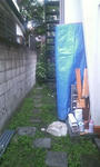 たまに外の空気を吸いに玄関出たら、うちの小さな資材置き場のベニヤ板の上に何かいる(◎o◎)