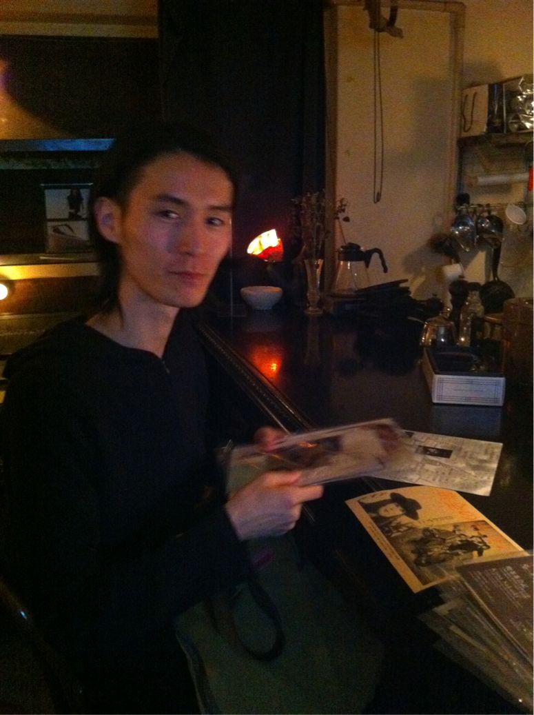 今日は僕が子共の頃に育った信濃町、四谷へ向かう。 女性デュオの即興で踊るってお知らせがきて、たまたま場所が四谷だったから傘をさして四谷までいった。 はじめて行くお店 喫茶茶会記 はやく着いた。まだお客が僕だけだった。お店は小さなつくりでとても静かにJAZZと雨音と流れてくる。 お店の人に折込の許可を頂き、折り込んでいたら2人目の来客が訪れる。 お店の人とは知り合いだったらしく、僕が折り込みをしているのをみたら、「じゃぁ、僕も折り込みしていいかな」と隣りに座ってきた。 ねねむのチラシを渡した。 そしたら、「ラフォル行きましたよ。」ってΣ(・□・;)メェー もう少しはなしを聞いてみたら、今度「温風」で踊る霜村佳広さんと奥さんの2人が結婚する以前、一緒に暮らしていた同居人だったという。Σ(ーー;) わぉ 「表現」というバンドでバイオリンを弾いている佐藤公哉さん。 佐藤さんとお店の人の話を聞いていたら、お店の人はここ以外にも六本木スーパーデラックスでも働いているらしい、アシカリ ジュンさんって方だった。 げん |