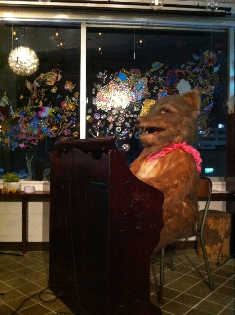 にしすがも創造舎という施設にあるカモカフェの店長さんの高山さんが休憩から出てきたから軽く挨拶をかわす。 よし!チラシも受け取ったし、ちょうど以前に我孫子と代官山で企画を一緒にしたジョン(犬)さんからライブのお知らせを頂いていたので会いにいく。 渋谷リエゾン さっそくオーナーの周宝さんにチラシを置いてもらう。 そろそろジョン(犬)さんの演奏がはじまるかな、と椅子に腰掛けたとき、お店にギリギリすべりこみで入ってきた方が。 Σ(・□・;)うぉぉぃっ。 えーっ!高山さんっ!? 。。。2時間ぶりの再会。 んでもって演奏がはじまる。 次に向かったのは荻窪ベルベットサン こんどは僕がギリギリすべりこみ。 んでもこっちは終了3分前。 入るないなやノイズ中村さんにイキナリ煽られる。こんどの公演、温風で音楽を担当する高橋保行さん、柏の駅前店のねねむ公演で楽隊参加してくれていた池澤龍作さん、猫に噛まれたって包帯を巻いている吉田隆一さんがいた。 ライブ終了後、高橋保行さんにチラシを少し渡して、次に向かったのは落合南長崎でした。 げん